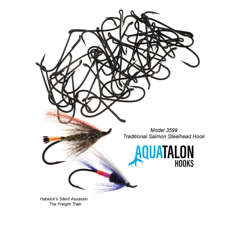 The AquaTalon Traditional Salmon/Steelhead hooks arestrong and functional hooks to use on a variety of salmon and steelhead style flies.This traditional hook has an aesthetically pleasing curve to the bend, a low profile barb and a functional tapered loop up-turned eye. The forged heavy wire gives the fly extra strength and helps the fly to sink. The 3500 has a black/nickel finish that gives the hook some corrosion resistance. The 3599 has a classic black finish.