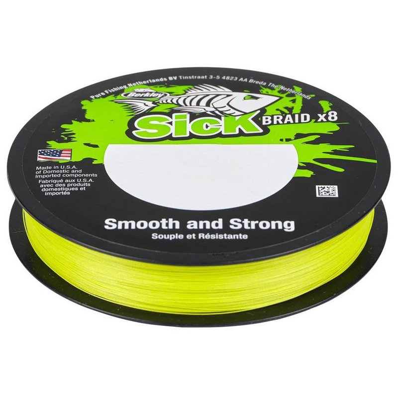 The Berkley Sick Hi-Vis Yellow Braid 300m is a Berkley SICK 8 strand PE braid and offers super smooth high-performance line with low stretch and high knot strength. The Berkeley SICK braided mainline supplied has zero stretch so is perfect for bite detection and has a thin diameter to break strain ratio which will allow you to cast further and easier with lighter fishing lures. This braid is also incredibly smooth while also allows for further casting.