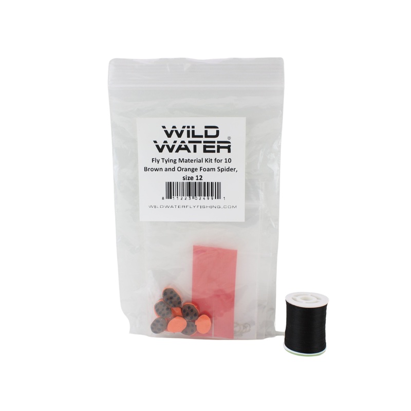 Wild Water’s fly tying kits give you all the materials you need to tie a small batch of flies. This kit gives you enough materials and hooks to tie 10 Brown and Orange Foam Spider, hook size 12. You will also get a spool of thread and a sample tied fly with this kit.