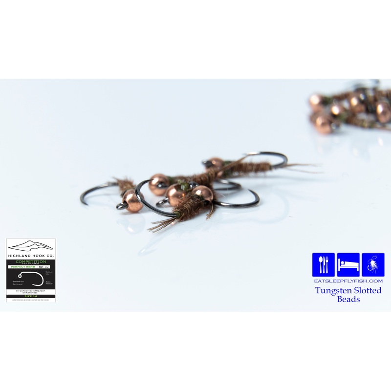 Absolutely one of the most effective patterns that I have ever used. This fly simply works everywhere! We fish these in different weights depending on the water currents and in varying bead colors. All Eat Sleep Fly Fish flies are tied with Highland Rod Co. G2 wide gap Hooks and Eat Sleep Fly Fish Tungsten Slotted Beads. Some of the very best hooks and most consistently heavy, slotted beads on the market. Now you can fish the same flies that the pros use in different weights, without having to tie your own!
