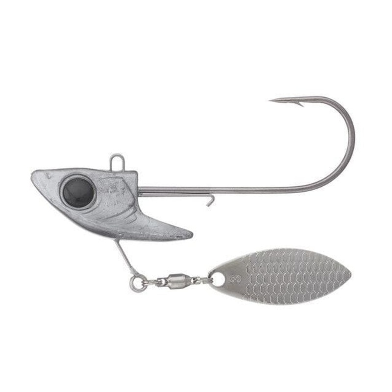 Taking the Damiki Rig to the next level, the Damiki Rig Underspin Head adds a little flash to your presentation and helps generate more bites. Designed for vertical jigging during the cold water months for suspended and lethargic fish, the Damiki Rig Underspin Head features a center balanced weight design and a 90-degree line tie, which allows it to spiral through the water column as it sinks then sit perfectly horizontal on a tight line to mimic an injured or dying shad. It also features a pressed scale pattern blade attached by a premium ball bearing swivel that reflects more light and resembles the bright flash of a swimming baitfish. Armed with a razor sharp Viper Hook that delivers lightning fast hook penetration and covered in a durable chip resistant powder coating, the Damiki Rig Underspin Head is the perfect tool for cold water jigging when you need that little extra flash to attract bites.