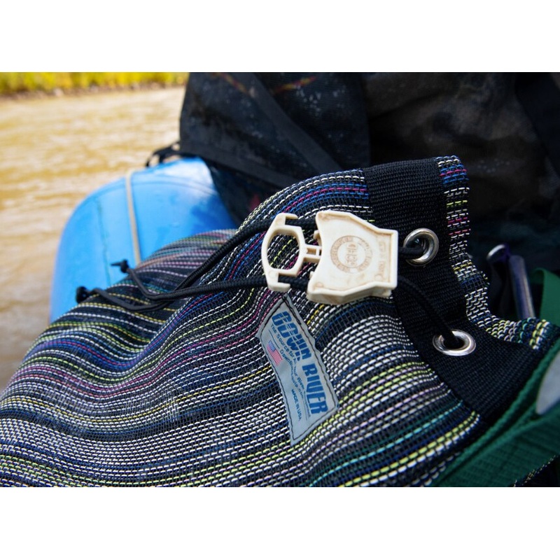 Arguably Down Rivers most versatile bag yet! The quick release system allows for fast in & out access. A strong D ring allows this bag to quickly fasten anywhere with the use of a carabiner or strap. A tri slide attachment at the base of the bag allows the user to run a cam-strap from the D-ring to the base. Double lined with Down Rivers signature multi-mesh and reinforced Xtra Duty mesh base make this bag more durable than anything on the market. Dont limit yourself to a single purpose river bag. A drag-bag, thwart bag, strap-bag, trash-bag, or daypack are just some of the uses for this adaptable river bag.