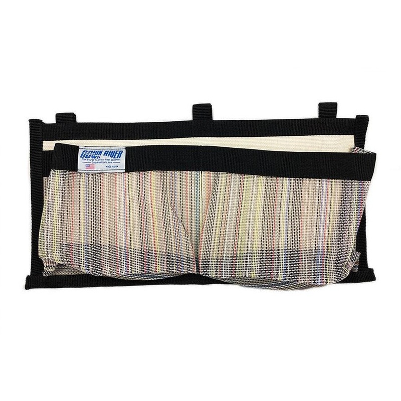 The Down River Cup Holders-Double easily attaches to your frame with Velcro hook and loop straps, providing a convenient spot to store beverages, snacks, sunscreen and all the other small items that tend to get buried in your boat. Roomy enough for a wide mouth water-bottle, you and your passengers will appreciate the convenience of these Cup Holders. Down River always strives to Go Green. We maximize material use by intagrating all of our meshes and webbing into the production of our smaller sewn goods. As a result, the Down River Cup Holders-Double comes in various colors. Give us a call if you would like to inquire about in-stock colors.