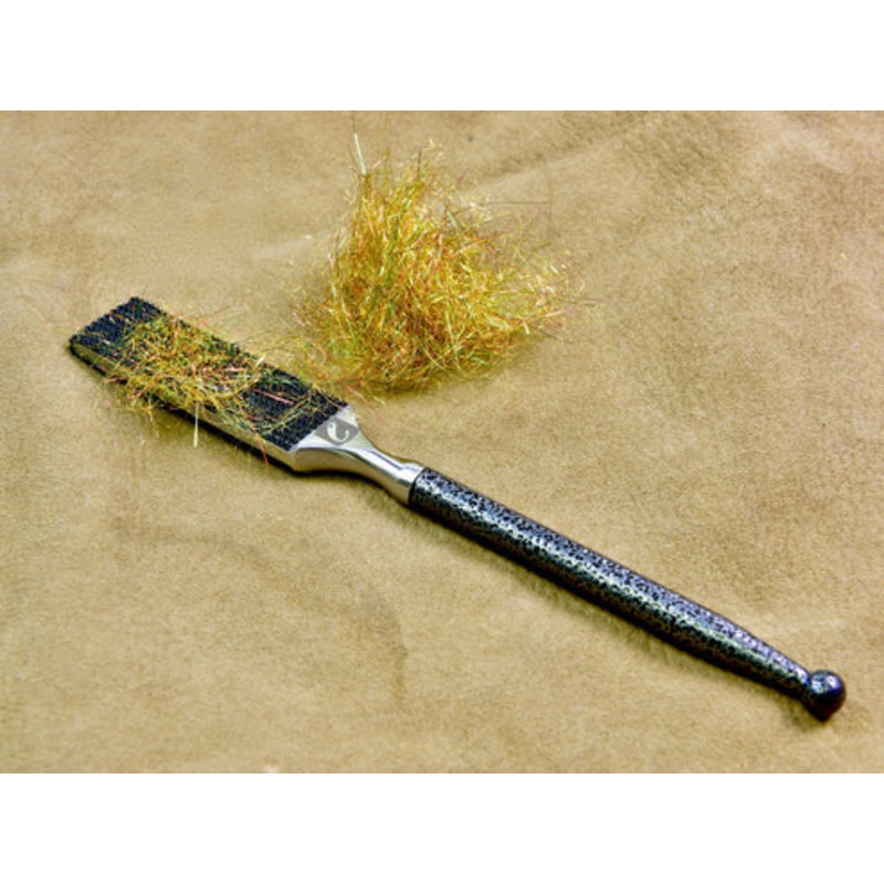 Made of the toughest 1.5 cm velcro on a 15 cm stainless steel handle with an ergonomically friendly grip makes this brush super effective. Comb hair, brush out dubbing or pick single strands. For us this tool is an absolute must for every fly we tie. A copy of Mikaels old mustard spoon brush which he created hundreds of thousands of salmon flies with.