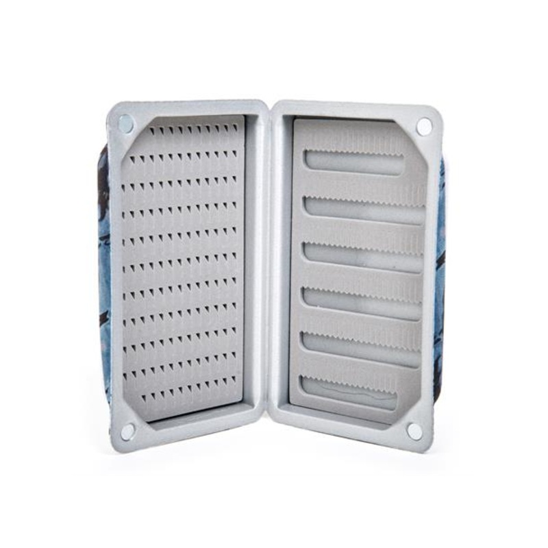 Superlight fly box made of molded foam covered with durable lycra and this beautyfulsalmon printed on it! One side has tri-foam and the other side 6 rows with micro slits. A great combo box for nymphs and dries. Measurements: 160 x 90 x 32 mm