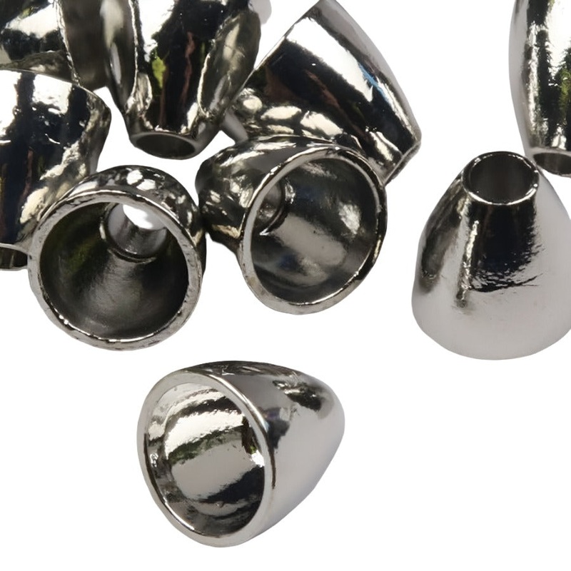 Hareline Tungsten Coneheads are heavy tungsten coneheads to finish your streamers with. Tungsten is approximately twice as heavy as brass. This popular material is available in 3 colors and 3 sizes.