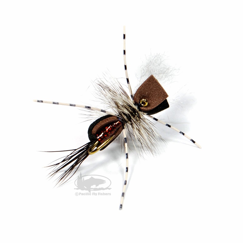 The Hippie Stomper – Brown is an all around attractor dry fly that will have fish looking up. With its Brown and Black body, grizzly hackle and barred grizzly legs, use it during a hopper hatch but give this buggy looking fly a float on your favorite trout stream any time of the year. With its foam body and generous hackle, the Hippie Stomper – Brown floats all day long and is easy to see with its white, high visibility polypro top.