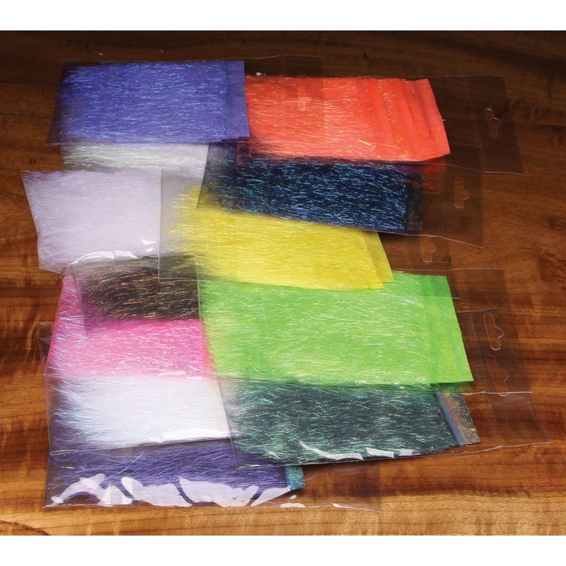Ice Dub Shimmer Fringe is a great material for winging or fly bodies. Trim a piece off, tie it in, add some eyes, hit it with clear cure goo, and fish!