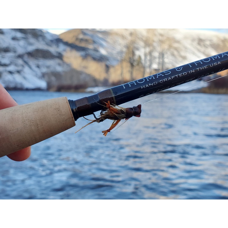 From the vise of Joe Goodspeed, this mini crayfish interpretation is a phenomenal trout fly. Tight lining presentation the optimal way for fishing them but, an across and down presentation on a slow swing will often produce the goods as well.