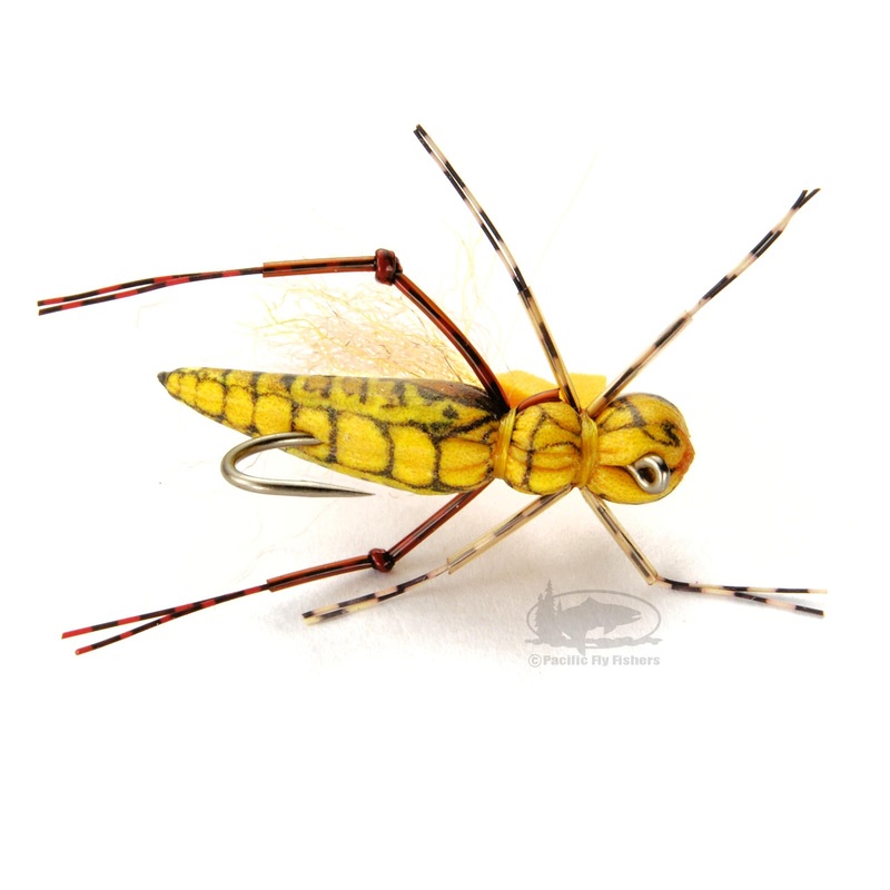 The very realistic KK’s Henneberry Hopper – Yellow looks about as much like a live grasshopper as anything you’ll see out there. KK’s Henneberry Hopper has a foam body for excellent floatation, great looking, segmented legs, and an unbelievable amount of detail on the body markings. The trout won’t know what hit them.