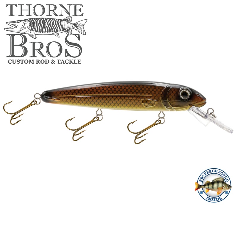 The RACHEL will fill several roles in your musky/pike-fishing tackle box. You can troll it down to 15 feet and let the classic wide wobble go to work. You can crank it like a traditional crankbait down to 6 feet. Or you can twitch it like a jerkbait, with lots of erratic darting action. However you choose to fish this lure, you’ll have the advantage of EBS TechnologyTM, which emits the actual biological sounds of forage that predators commonly feed on. That translates into an attraction radius that’s double that of a traditional lure and the ultimate enhancement to the Rachel’s versatility as a must-have bait for predators! Built with 2mm wire-through construction.