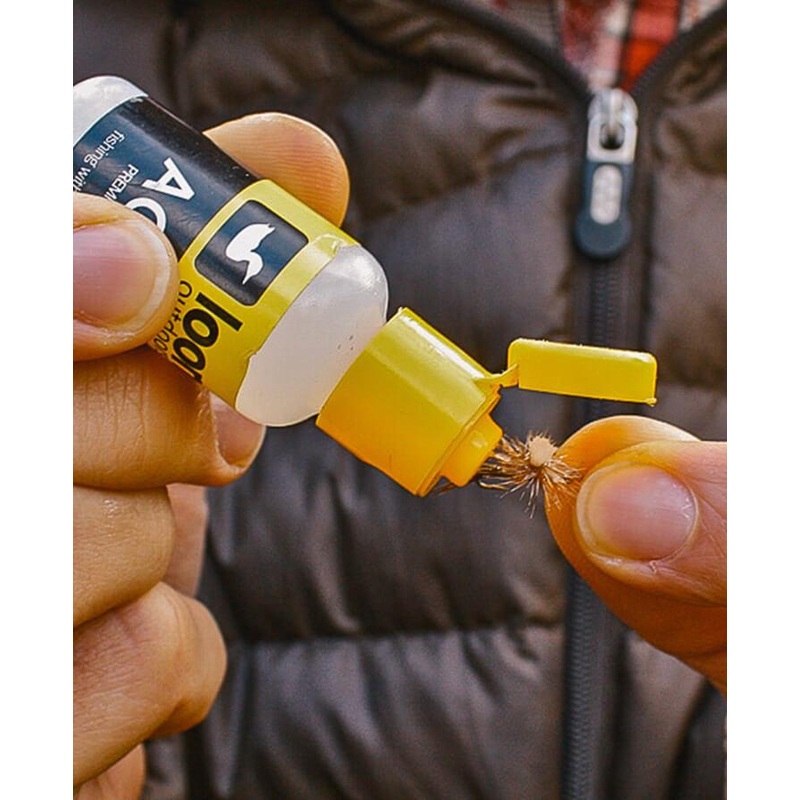 This premium gel floatant is the worlds best fly floatant. Aquel is long lasting, silicon based and wont melt when its hot or harden when its cold. Furthermore, it masks human odor and wont leave any slick on even the calmest water. (Pronounced ahh kwel).