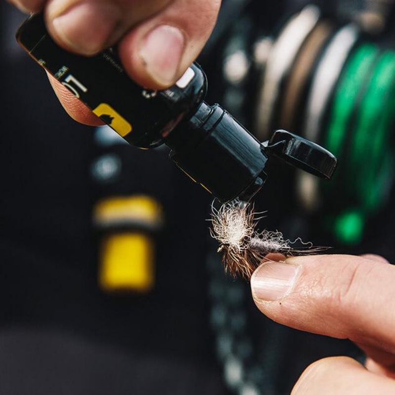 Prior to first cast, apply desired amount of Lochsa to fly. Use fingers to work Lochsa into hair and hackle. If fly becomes water logged, use powder desiccant to dry, then reapply.