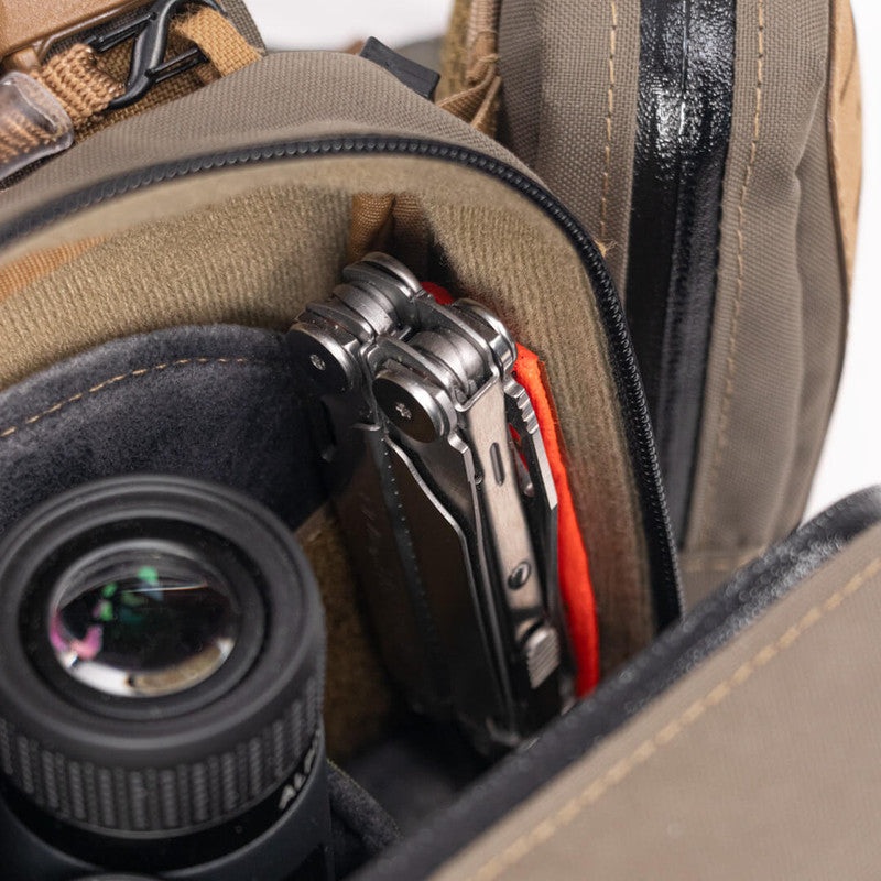 SG-Fieldcore Magnet Socks are incredibly useful and versatile accessories for your pack. Equipped with Velcro hook on each end, Magnet Socks can be placed anywhere inside the main compartment of the Frontier Chest Pack. The magnets are strong enough to retain a full size multitool (like a Leatherman Wave) or a double stack mag – including mags with a polymer outer body like Glock mags. Made in USA.