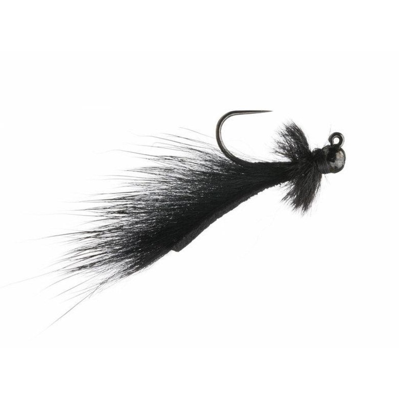 The Mini Leech Jig is my go-to anchor fly for nymphs, dry droppers, or as a solo drifting streamer imitation. Tied on an Umpqua jig hook with a tungsten bead, the micro pine squirrel matched with the ostrich jerk collar provides enough buoyancy that it suspends balanced without the need of an extended pin and bead. Produced in sizes #12,14,16 and colors sculpin olive, rust, or black, this is one jig fly you dont want to miss out on for all moving and still waters!