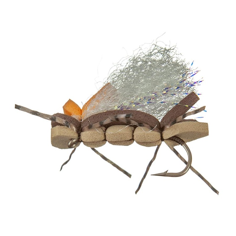 Jake’s Trigger Belly Foam Bug from Montana Fly Company has a classic terrestrial profile with a two-tone foam body and a red trigger point tied into the belly. The white parachute and orange sighter post make this bug easy to see at a distance.