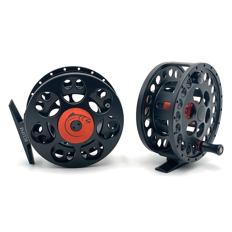 The Eclipse Reels are a machined die-cast reel with a smooth, sealed, drag system that consists of stainless steel and carbon discs. The drag one turn adjustment knob is also fully machined. These reels have more than enough room to take backing with any suitable fly line. With all this the Eclipse gives you the highest performing reel for a real value that will put your mind at ease. Pick from the two different color choices of Light Olive/Matte Black or Burnt Orange/Matte Black.