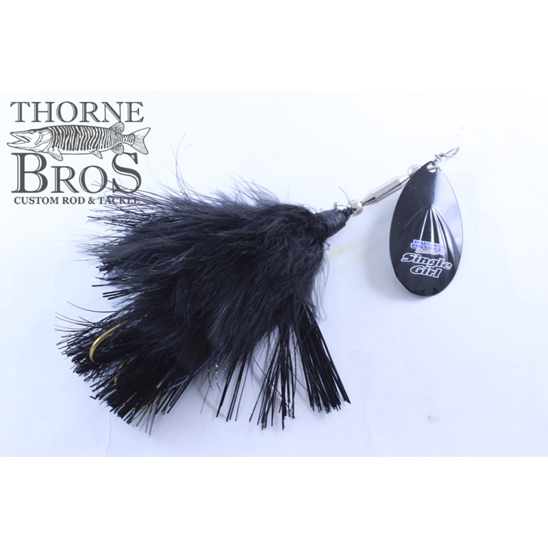 The new Single Girl is a Marabou/Flashabou combo bait similar to the Electric Bunny but has only one fluted blade. That is the same fluted blade that George Wahl used on his famous Eagletail.