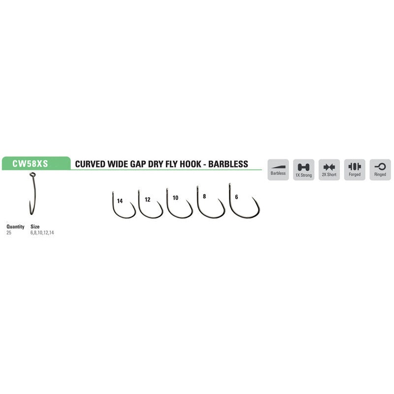 Mustad’s barbless alternative to the CW58XSAP Heritage fly hook. A wide gape 1X strong, 2X short ringed straight eye dry fly hook. Ideal for parachutes, extended body patterns and emergers. Fitted with the new TitanX matte gun metal finish for reduced reflected glare and increased stealth. QTY (25)