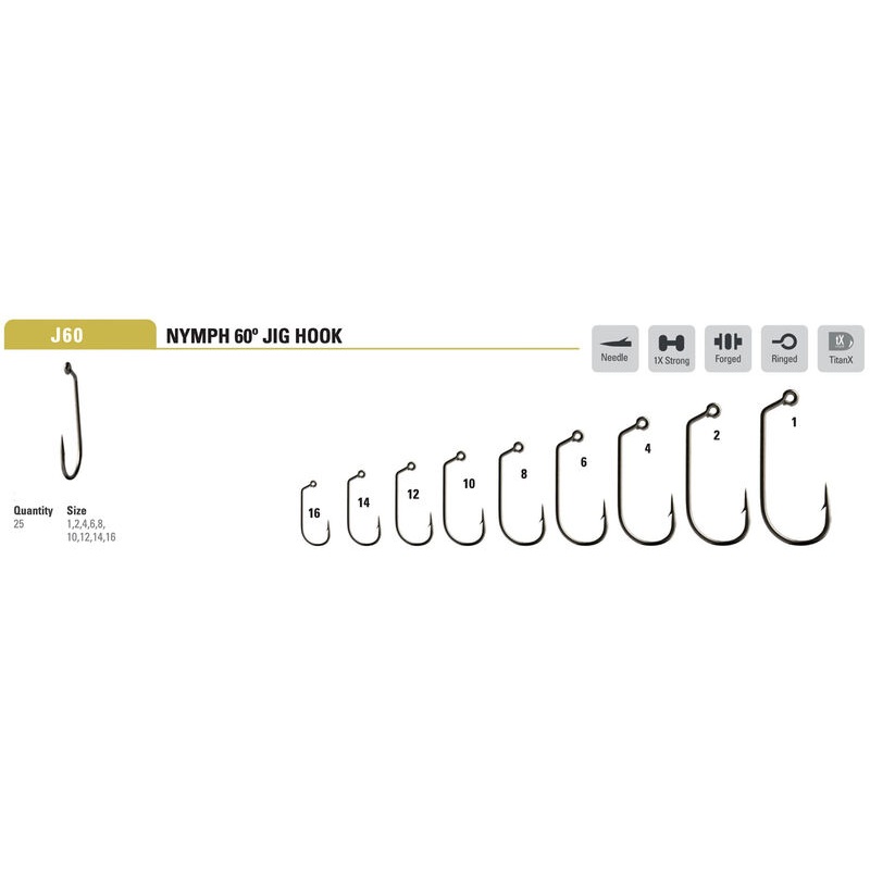 The new Mustad Heritage J60AP is a round bend barbed jig hook with a 60 eye to accommodate tungsten beads. This balance hook fitted with a bead, will fish upside-down increasing hook ups and decreasing snags. Fitted with the new TitanX matte gun metal finish for reduced reflected glare and increased stealth.