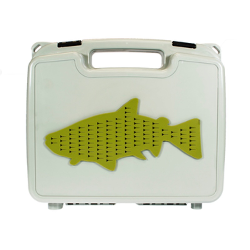 Improved boat box is stronger thanks to ABS construction, water resistant, and features thick foam to secure the largest flies. Includes an exterior silicon fly drying patch.