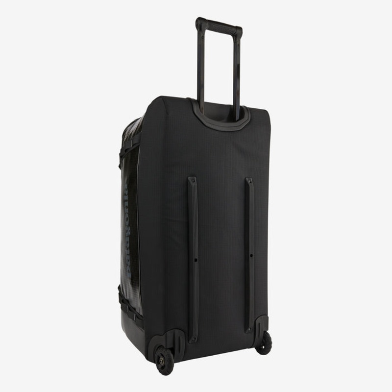 A highly weather-resistant 100-liter gear hauler with sturdy wheels and a telescoping handle. Made with 100% recycled body fabric, lining and webbing.