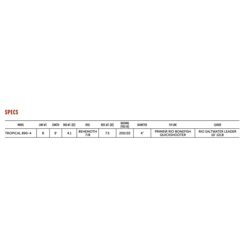 Fishing the flats in a tropical location might feel like youre in paradise, but you better come prepared. The TROPICAL SALTWATER FIELD KIT has everything you need for your tropical flats adventure. The medium-fast action rod is easy to cast, and the BEHEMOTH reel with its powerful carbon drag will stop any fish in its tracks. Whether youre targeting bonefish, redfish, permit, snook, or even baby tarpon, the TROPICAL SALTWATER FIELD KIT is built to stalk fish on any flat you might find yourself on.