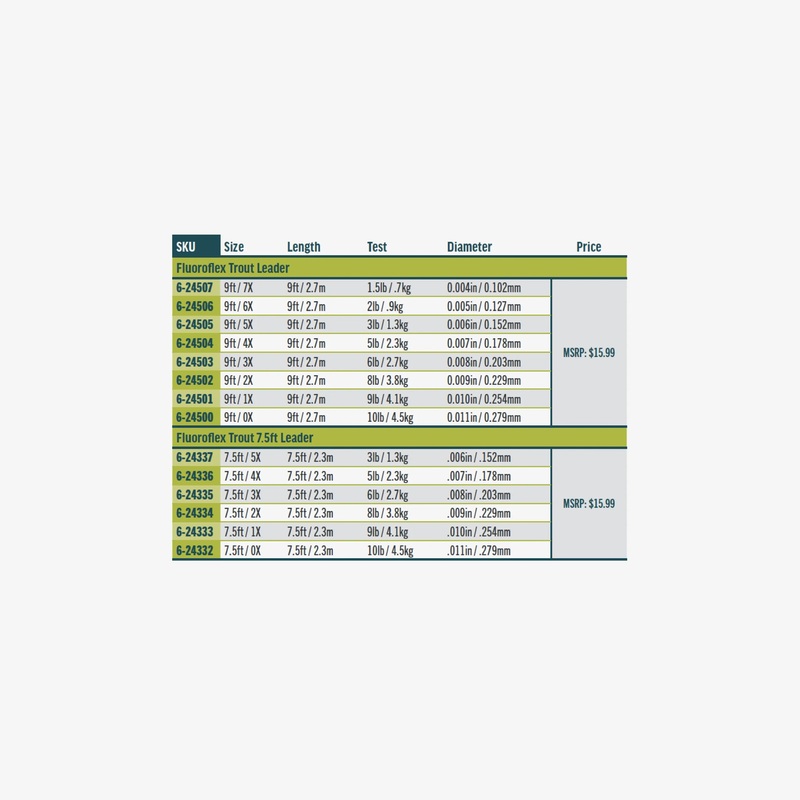 Be the first to review “Rio Fluoroflex Leader|9′ LEADR|0X|1X|2X|3X|4X|5X|6X”