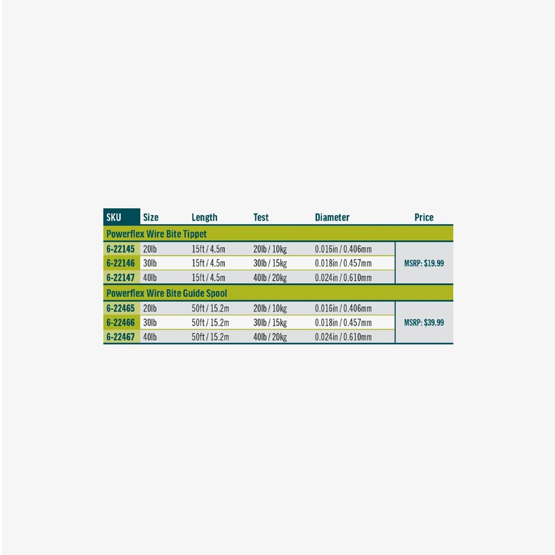 RIO’s Powerflex Wire Bite Tippet is a tough, flexible nylon-coated wire that’s perfect for those sharp toothed critters. This knot-table, braided wire is supple enough to tie directly to the fly. Available in three size options; 20lb, 30lb & 40lb, and in regular sized spools, with 15 feet on each spool, or guide spools with 50 feet on each spool. Tough, flexible, nylon-coated wire that is super easy to tie a knot with – ideal for sharp-toothed critters like Pike, Musky, Barracuda and Bluefish.