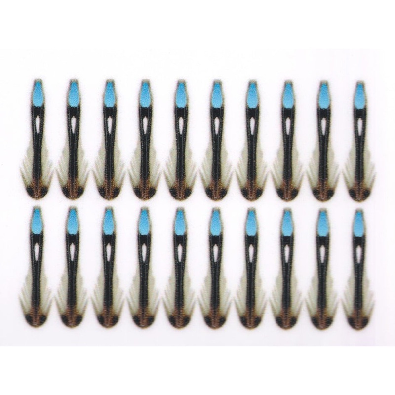 Especially designed to imitate Jungle Cock which is CITES protected, Semperfli designed this product to help protect that endangered species and avoid immoral operations. In addition, it allows any angler to avoid the risk of detention or worse when crossing international borders with fly patterns requiring Jungle Cock eyes. Sizes are – large: 1.2 in. (30mm); medium: 1 in. (25mm); small: 0.67 in. (17mm); and x-small: 0.39 in. (10mm). Made of thick, durable vinyl, 20 ‘feathers’ per package.