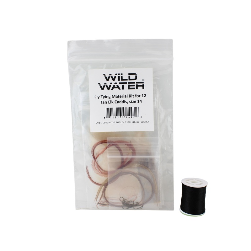 Wild Water’s fly tying kits give you all the materials you need to tie a small batch of flies. This kit gives you enough materials and hooks to tie 12 Tan Caddis, hook size, 14. You will also get a spool of thread and a sample tied fly with this kit.